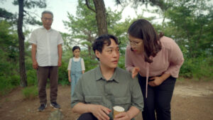 The couple climb up first to make a table for the ceremony. Ha-yeon walks slowly together with her old grandpa. Suddenly Won-Jae couldn’t remember the wife’s grave that he visits every year and explores the mountain with Ha-yeon unexpectly. They finally find the wife’s grave. Won-Jae wants to stay with his granddaughter as long as he can.