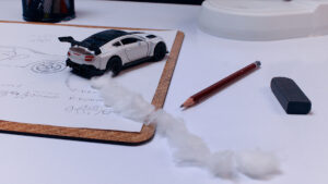Un designer sta lavorando alla sua idea, ma non riesce a portarla a termine e rimane deluso. Accartoccia il progetto e lo getta nel cassetto della scrivania, per poi passare a una nuova idea. Il progetto si trasforma allora in un modellino di carta della stessa macchina e, mentre il designer è impegnato con un altro lavoro, la macchina comincia ad accelerare e a colpire lo sportello del cassetto per aprirlo. Dopo diversi tentativi, il cassetto si apre e…