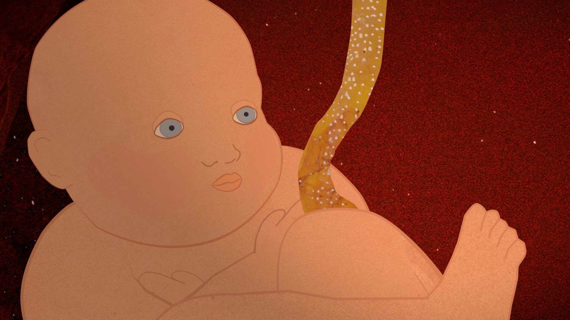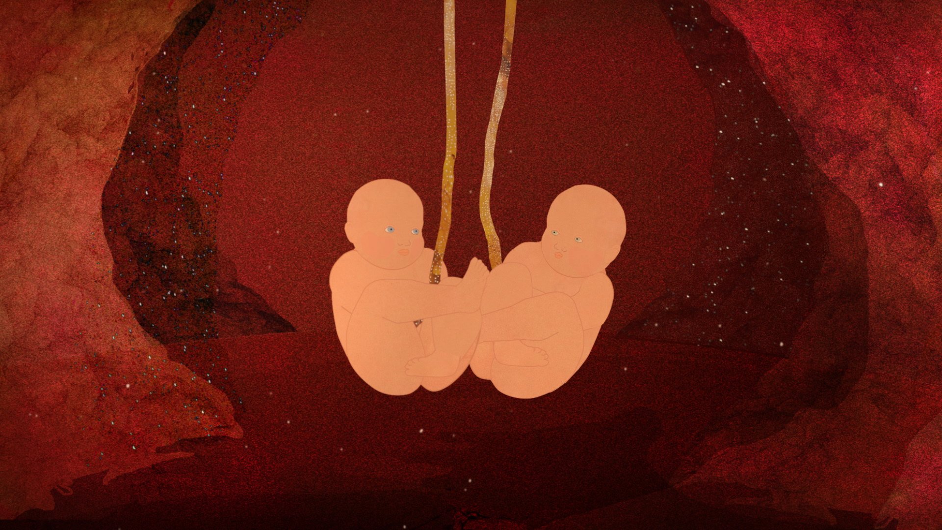 Two twins discuss in their mother’s belly about what they might find once they are born.
